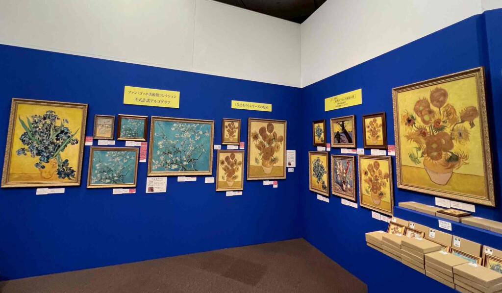 売場は美しいブルーの背景にゴッホの描いた色鮮やかな作品がよく映えています。